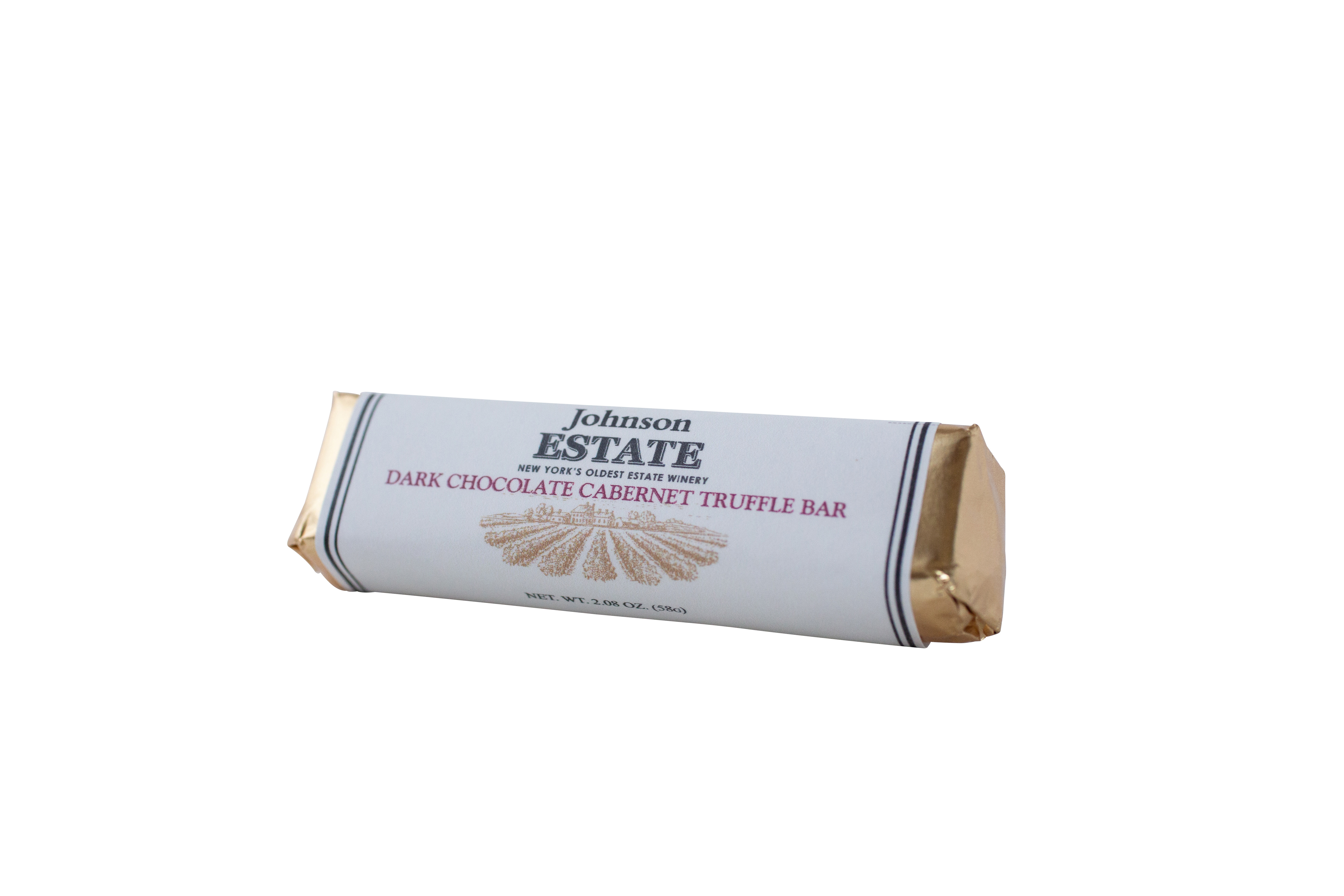 A private-label chocolate made for Johnson Estate by Anette's Chocolates, this bar is made with Cabernet Sauvignon (sadly, not our Cabernet Sauvignon) and features intense dark chocolate and red wine flavors.
